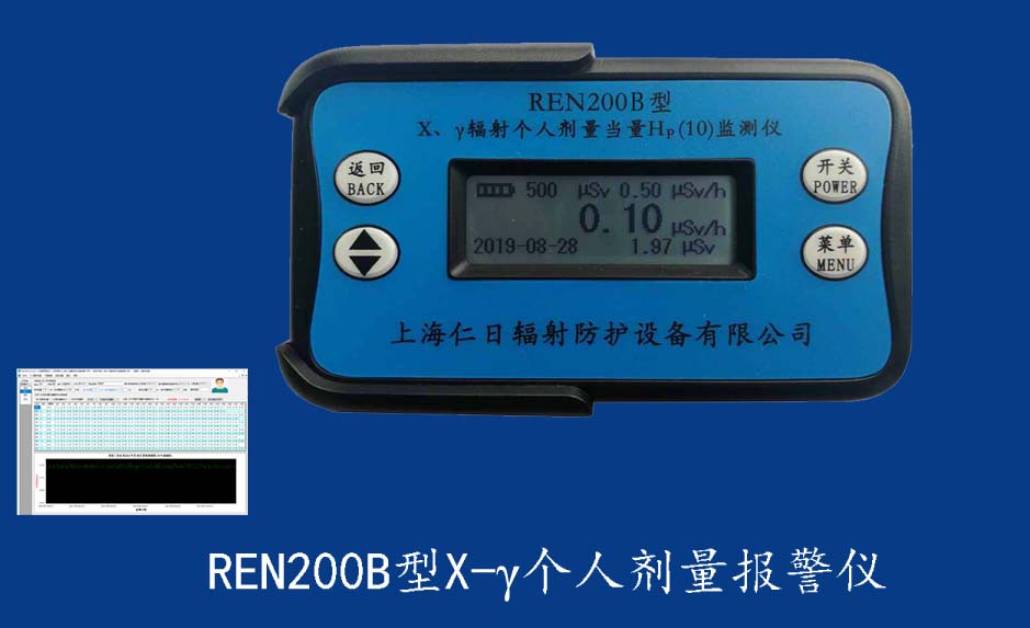 REN200A 個人報警儀REN200A型X、γ輻射個人劑量當(dāng)量HP(10)監(jiān)測儀(簡稱:個人劑量報警儀)內(nèi)置高靈敏度蓋格計數(shù)管為探測器,主要用來監(jiān)測各種放射性工作場所的X、γ以及硬β射線的輻射,具有響應(yīng)快,測量范圍寬的特點。能顯示工作場所的劑量當(dāng)量率和累積劑量,更換電池時,日期及累積數(shù)據(jù)能永久保存?蛇x配RenRiPersonal個人劑量管理軟件,該軟件可存儲多個人的歷史數(shù)據(jù),能記錄日累積、月累積、年累積、輻照時長、計算平均劑量率、扣除或不扣除本底輻射,且以文字和圖譜的方式展現(xiàn)數(shù)據(jù)。廣泛應(yīng)用于核電站、加速器、鋼鐵、化工、同位素應(yīng)用、工業(yè)X、γ無損探傷、放射醫(yī)療、鈷源治療、γ輻照、放射性實驗室、核設(shè)施周圍環(huán)境監(jiān)測等領(lǐng)域中的工作人員進行個人安全